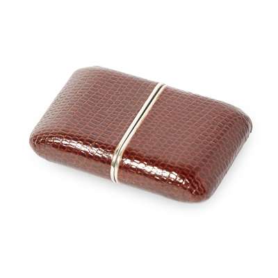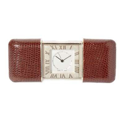 Atlas range, in the Movado style, split leather cover sliding outer case, inner square with Roman numeral indicators, silvered dial with Alarm function