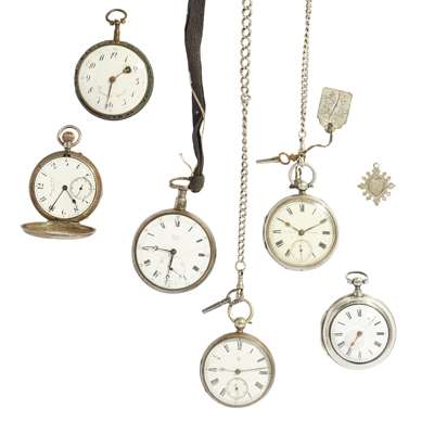 A collection of six silver and other cased pocket watches