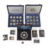 2007 proof silver 20p; group of miscellaneous gilt and coloured coins; a collection of 18 mixed silver Australian proof coins; Canada 25 silver proof coins, $5; Royal family a box of proof coins, crown size Commonwealth countries 1990s; an album of Britain's Last Tommies, gilt and coloured coins; cased presentation set of squadrons of the RAF four coin set; The Royal Family a box containing 24 proof coins relating to coronation etc and an 1871 one Rupee, Victorian Gothic head; Australia, 2015 silver coin set in presentation case and booklet (10); box six miscellaneous proof and coloured coins; box mixed proof and other coins, 1945 Maundy set, Churchill silver proof £1, 2 x Jersey silver and gilt proof £5; various other silver and other proof crowns, Royal family etc.; another case similar mixed proof coins, silver and base metal (24); USA 2005 silver and gilt $1 eagle, etc. (qty)