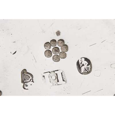 Joseph Jackson, Dublin circa 1800 of round form, slight punchwork detail to the border and the body, crests to front, all raised on leaf clasped cabriole legs, hoof feet