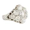 set with a cluster of nine graduated old round and cushion cut diamonds, pierced detail to gallery, engraved detail to shoulders