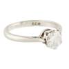 claw set with a single round brilliant cut diamond, to a plain platinum shank