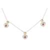 composed of three heart shaped pendants set at intervals, each collet set with a pear-shaped ruby in a border of pavé set round brilliant cut diamonds, to an integral white metal chain stamped 750