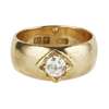 claw set with a round brilliant cut diamond to a plain wide shank