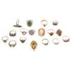 to include an 18ct gold ruby set ring, an 18ct gold three stone diamond set ring; a 9ct gold cameo ring and ten other 9ct gold various gem set rings; three further unmarked cluster rings and an unmarked citrine set pendant (17)