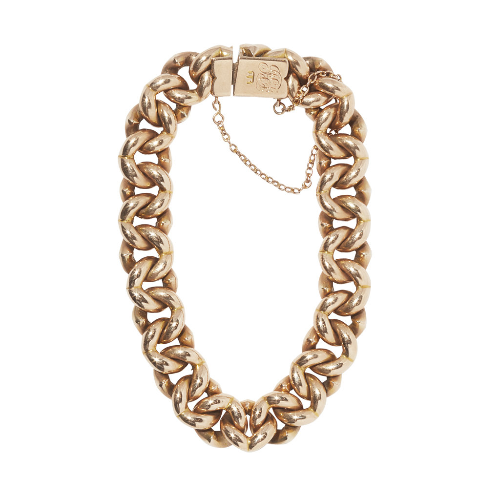 engraved initials to clasp, stamped 15, with safety chain, presented in a fitted box, A. Taylor & Son... Sauchiehall Street