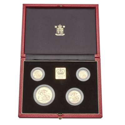 1996, £5, £2, sovereign and half sovereign, with certificate