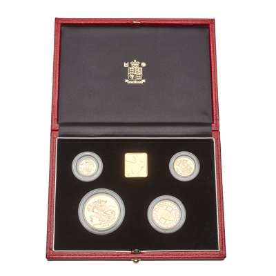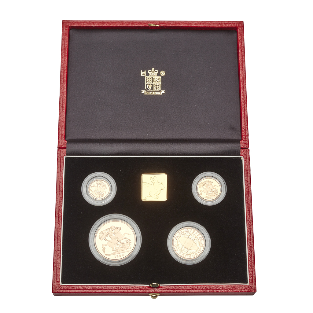 1999, £5, £2, sovereign and half sovereign, with certificate