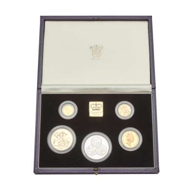 1993, £5, £2, sovereign and half sovereign, and commemorative silver medallion