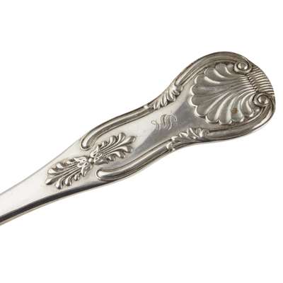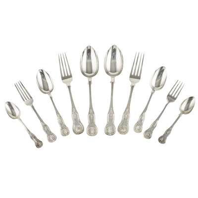 various marks and makers, Aberdeen and Edinburgh, comprising seventeen table spoons, twelve table forks, fourteen dessert spoons, thirteen dessert forks, eight teaspoons, all of single struck King's pattern, initial engraved to terminal (qty)