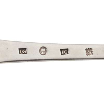 James Glen, marked to stem IG, Glasgow town mark, IG, S, of bold large ribbed Hanoverian pattern with engraved script initials to reverse of terminal