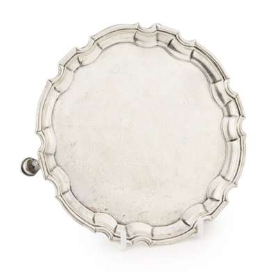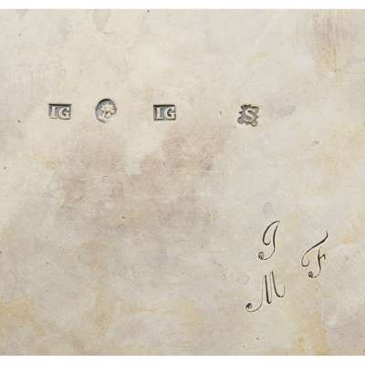 James Glen, marked IG, Glasgow town mark, IG, S, of simple shaped circular outline with crescent border, with engraved initials 'L / MF' to underside, raised on three scroll and hoof feet