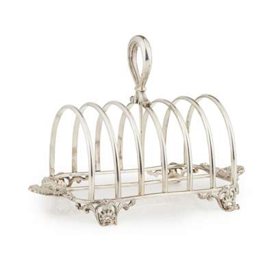 Robert Hennell, London 1870, of rounded rectangular form, cast bracket feet, shell motif to either end, loop handle