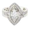 collet set with a marquise cut diamond, in a border of round-brilliant cut diamonds, each shoulder set with five graduated round-brilliant cut diamonds, to a plain platinum shank, together with a fitted platinum wedding band; the principal diamond with accompanying report by Independent Diamond & Gem. Research Laboratory, dated 09.10.2000, numbered 188290, stating that the diamond is 1.71cts, SI1 colour and H clarity (2)