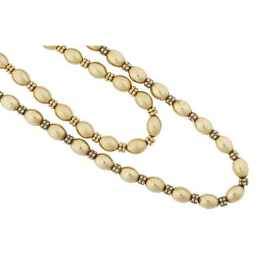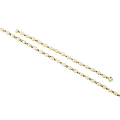 both composed of alternating egg shaped and beaded links, to a globular clasp (2)