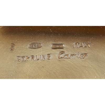 of rectangular outline, the hinged lid with blue guilloche enamel detail, signed Cartier, stamped 925 ITALY STERLING, in a blue Cartier pouch