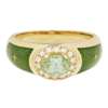claw set with an oval-cut tourmaline, in a border of small round brilliant-cut diamonds, with green and gold guilloche enamel detail to the shoulders, in a Fabergé presentation box