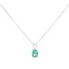 claw set with an oval-cut emerald, below a claw set princess-cut diamond, to a plain platinum trace link chain