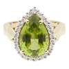 claw set with a pear-shaped peridot in a border of round brilliant-cut diamonds, an 18ct gold shank