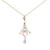 of open tapering design, millegrain set with an oval-cut aquamarine, seed pearl detail, suspending an aquamarine and seed pearl pendant, stamped 15ct, to a trace link chain, in a fitted box for ‘Edwards …Glasgow’