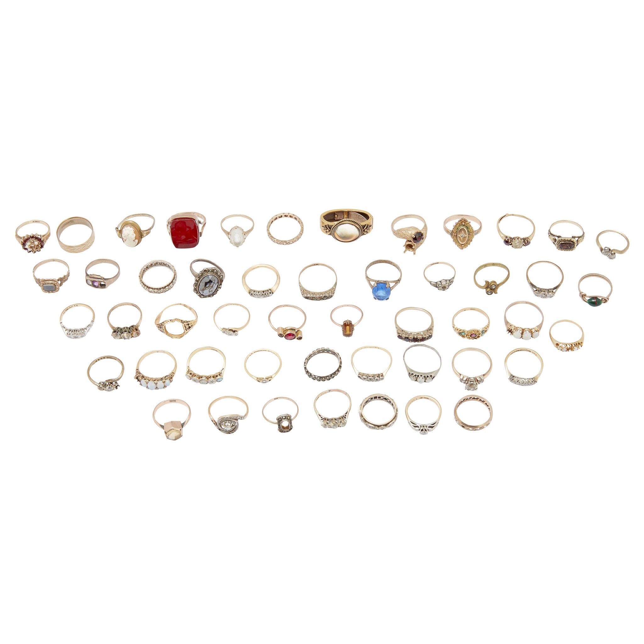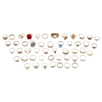 to include various unmarked gem set rings, some stamped 9ct, 18ct etc.; together with silver and costume examples, all indistinctly or unmarked (qty)