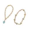 the first composed of curb links, set at intervals with knotted links collet set with pearl and turquoise cabochons, stamped 15; together with another similar, suspending a pavé set heart shaped turquoise pendant, stamped 15 (2)