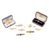 to include a peridot and seed pearl set bar brooch, stamped 15ct; a peridot, amethyst and seed pearl set bar brooch, two other seed pearl and peridot set bar brooches, various other early twentieth century bar brooches (9)