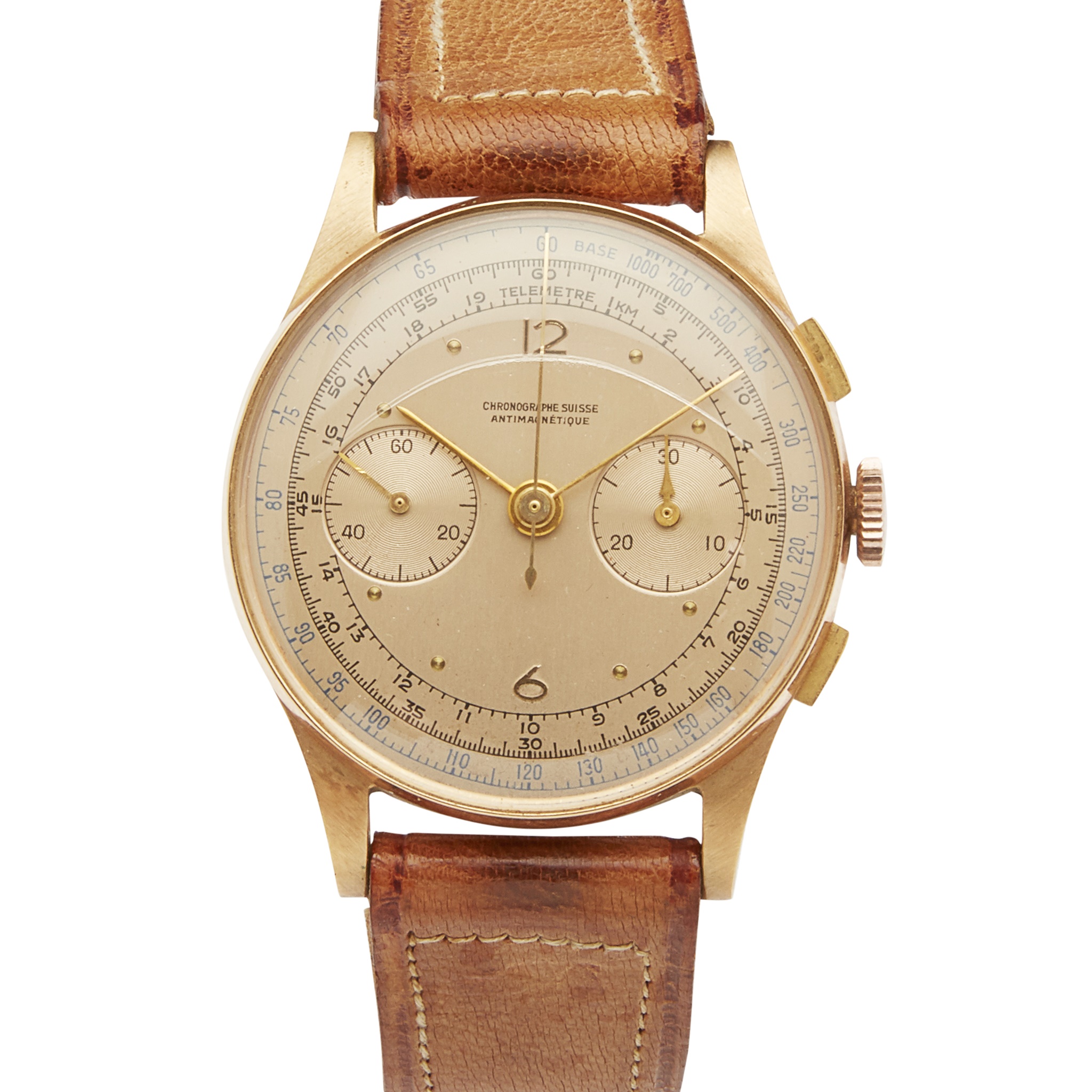 A Chronographe Suisse 18k gold wrist watch
