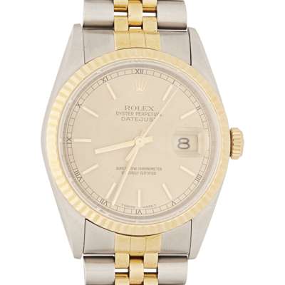 Oyster Perpetual Datejust, Ref. 16233, champagne dial, sweep second hand, baton indicators, date aperture, screw down crown, Jubilee bracelet with deployant clasp, with boxes and papers