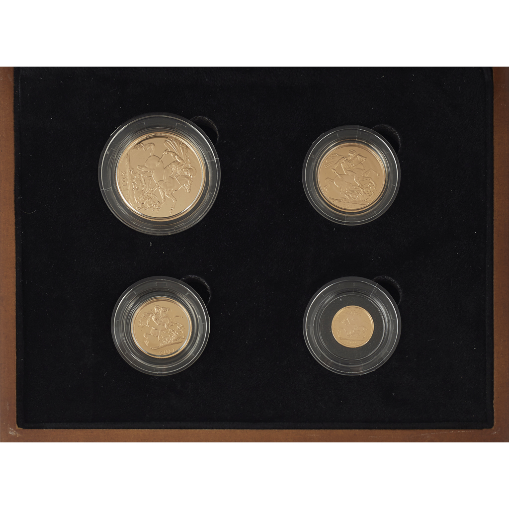 cased and with booklet, comprising; double sovereign, sovereign, half and quarter sovereign, all as issued