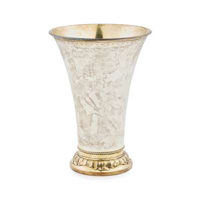 Guldsmedsaktiebolaget, Stockholm 1919, of tapering vase form, gilt border to rim with engraved foliate detail, gilt beaded border to base with foot of domed form and embossed foliate detail, gilt interior