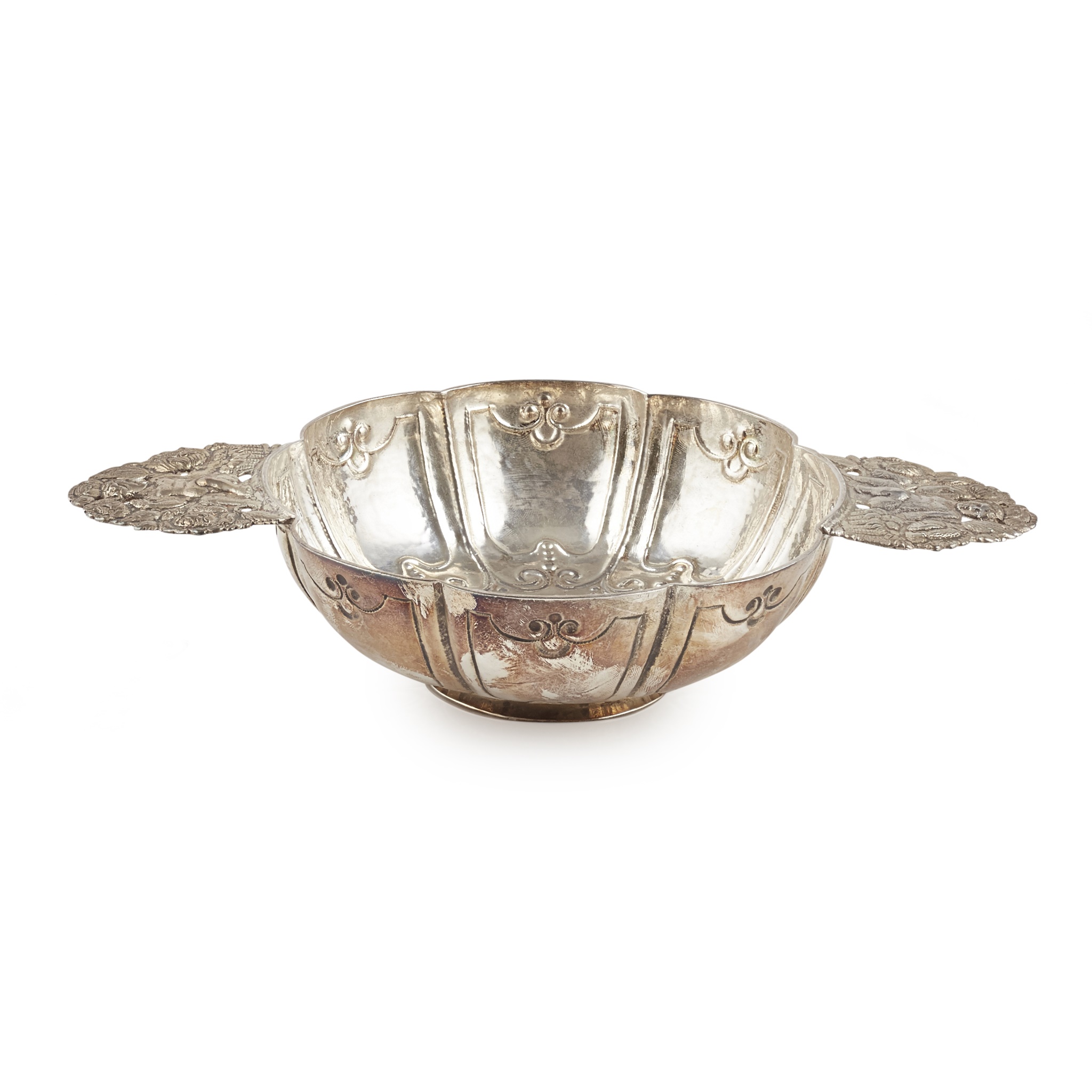 of circular lobed outline, with simple chased borders, twin cherub and flowerhead handles