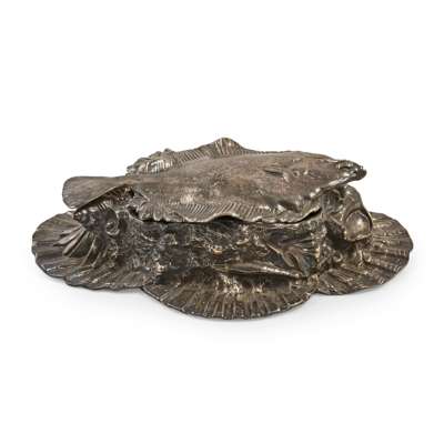 Richard Hodd and Sons, modelled as a large flat fish on a rocky base with various other marine items, shells etc.