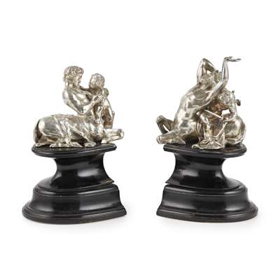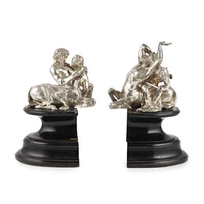 A pair of cast silver satyrs
