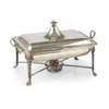 A silver serving dish and burner
