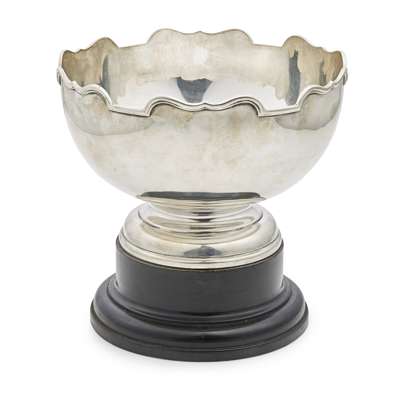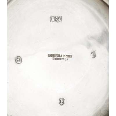 Hamilton & Inches, Edinburgh 1916, of circular form, moulded rim, raised on a stepped domed foot, with ebonised plinth