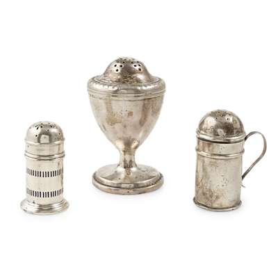 RK, Edinburgh, of traditional form, the pull off pierced lid with gadrooned border; together with a Chester mustard pot and another of domed form (3)