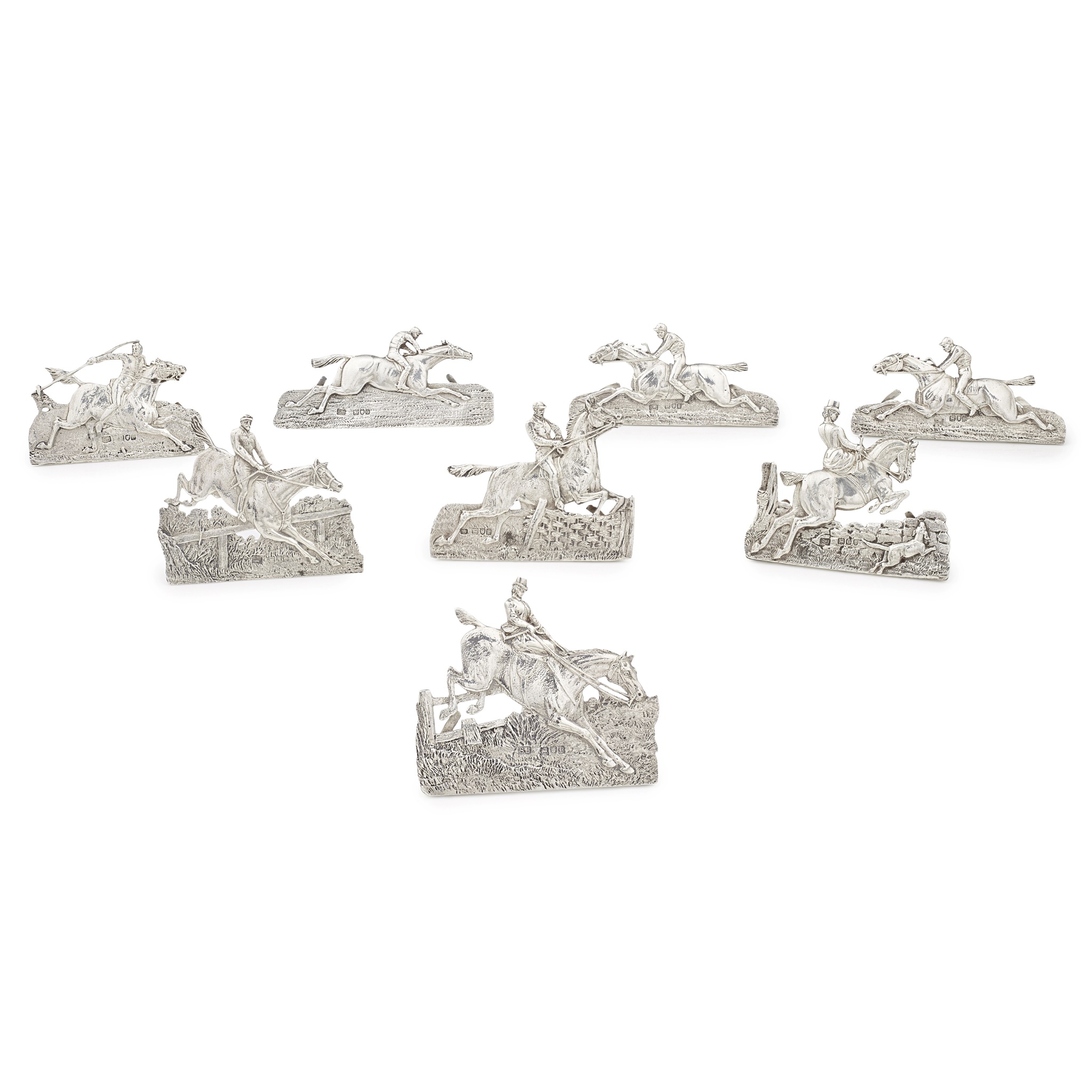 Samuel Jacob, London 1898, each cast depicting different jockeys throughout history, to a demi-lune base (8)
