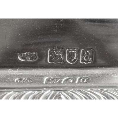 Width: 24.5cm, weight pair for silver dishes and liners: 74oz