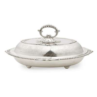 Jonas and George Bowen, Birmingham 1873, of oval; form, removable handle, the body with gadrooned border and engraved cartouches with scrolling surround