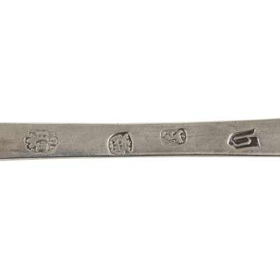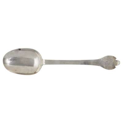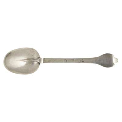 maker's mark EH with crown above and crescent below, London 1685, the plain trefid terminal prick engraved D*S / T*A / 1685, with moulded and beaded rat tail