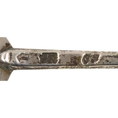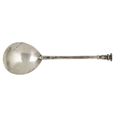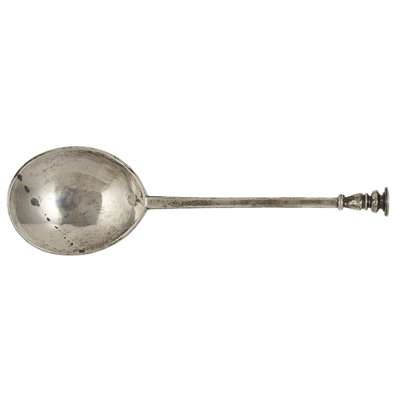 maker's mark II pellet between and below, circa London 1640, of conventional form, blank seal, slight leaf clasped terminal, fig shaped bowl