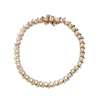 claw set with a row of round brilliant-cut diamonds between s-shaped spacers, to a concealed clasp and safety chain, stamped 14k