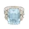 claw set with a large emerald-cut blue topaz, the foliate shoulders set with eight-cut diamonds, shank stamped 18k