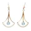 each modelled as a fan, the central knife bar claw set with a round cut aquamarine, the lower crescent set with a row of seed pearls, to hook fittings set with a seed pearl, unmarked