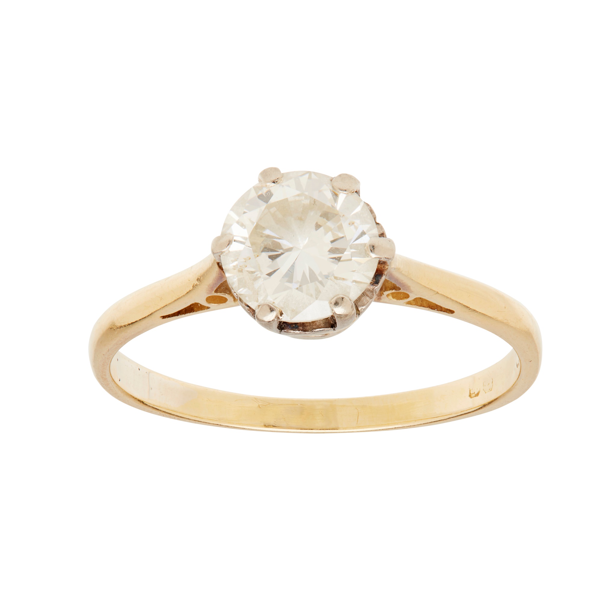 claw set with a single round brilliant-cut diamond, to a plain shank