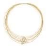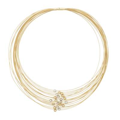 composed of twenty one graduated wire strands each with a sliding bead collet set with a round brilliant-cut diamond, to a twist clasp, stamped 750