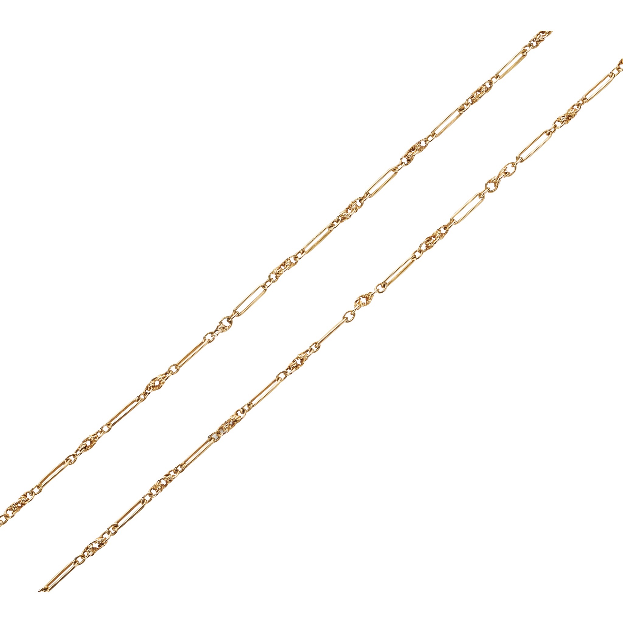composed of alternating oval and rope twist links, to a spring ring clasp stamped 15CT