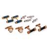 to include a pair of 18ct white gold cufflinks, the batons with cabochon sapphire set terminals, belcher links; a pair of 9ct gold onyx baton set cufflinks, stylised terminals; a pair of cultured pearl floral motif cufflinks, stamped 585 and a pair of enamel and paste set cufflinks