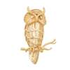 modelled as an owl perched on a branch, each eye collet set with a round brilliant-cut diamond